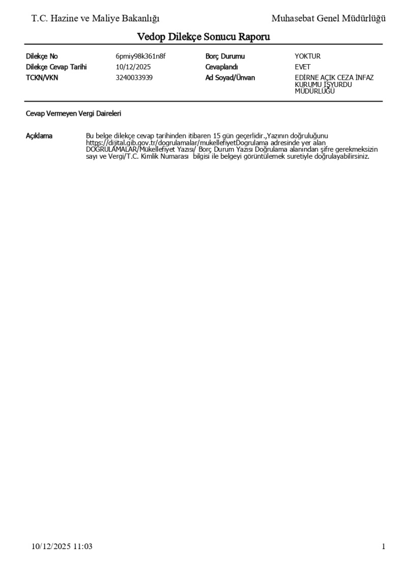 Resmi Kurumlar İçin Borcu Yoktur Yazısı
