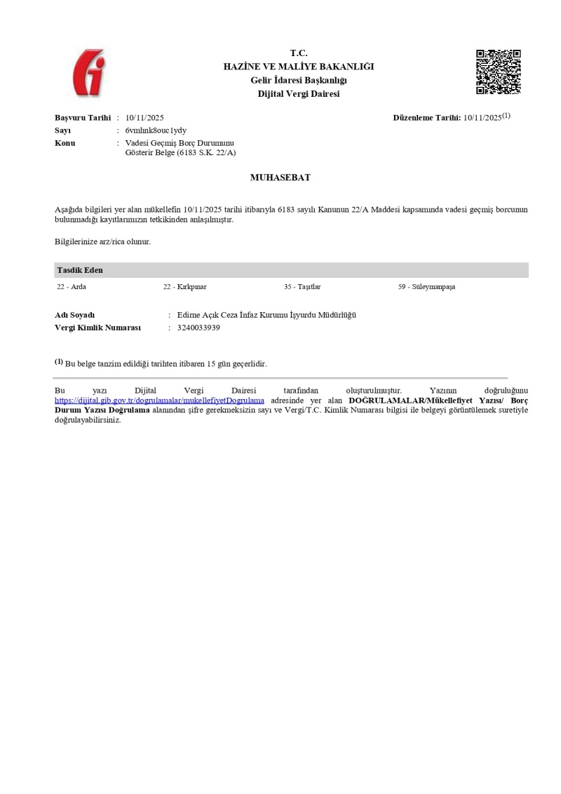Umurbey Mah. Büyükdöllük yolu üzeri Ticaret Borsası yanı Merkez/EDİRNE
