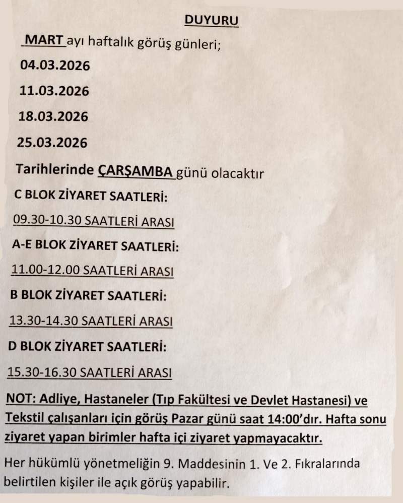 MART AYI HAFTALIK GÖRÜŞ GÜNLERİ